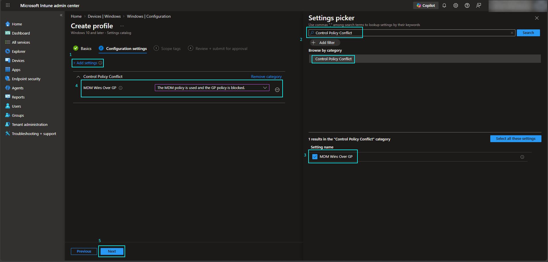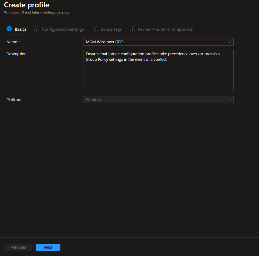 Create the MDM Wins over GPO Configuration Profile