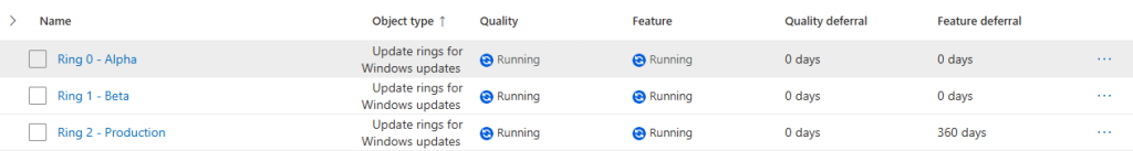 Your update rings will vary depending on your environment, however I have an example of a good starting point below. In this scenario, we have a small environment with only about 500 Windows endpoints.